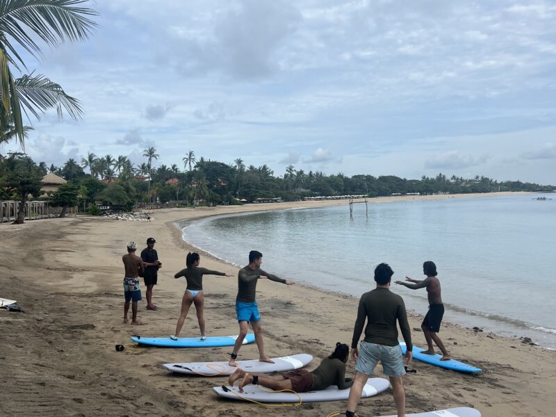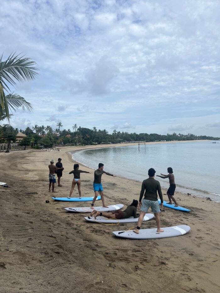 What makes us different? Small groups with one instructor for every 2–3 students, lessons tailored to your level, and daily video analysis to help you progress faster and surf safer. Whether you’re just starting out or chasing world-class waves, both our Canggu and Uluwatu camps offer the perfect surf experience, surrounded by Bali’s vibrant surf culture.