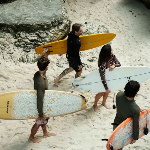Set on the cliffs of Bingin, WaveHouse Uluwatu is our premium boutique surf camp, designed with tropical natural materials and refined modern comfort. With only private rooms, it’s a place to recharge in style between surf sessions. A lush pool, open lounges, and golden-hour dinners with the group create the perfect balance of boutique living and the vibrant spirit of a surf camp.